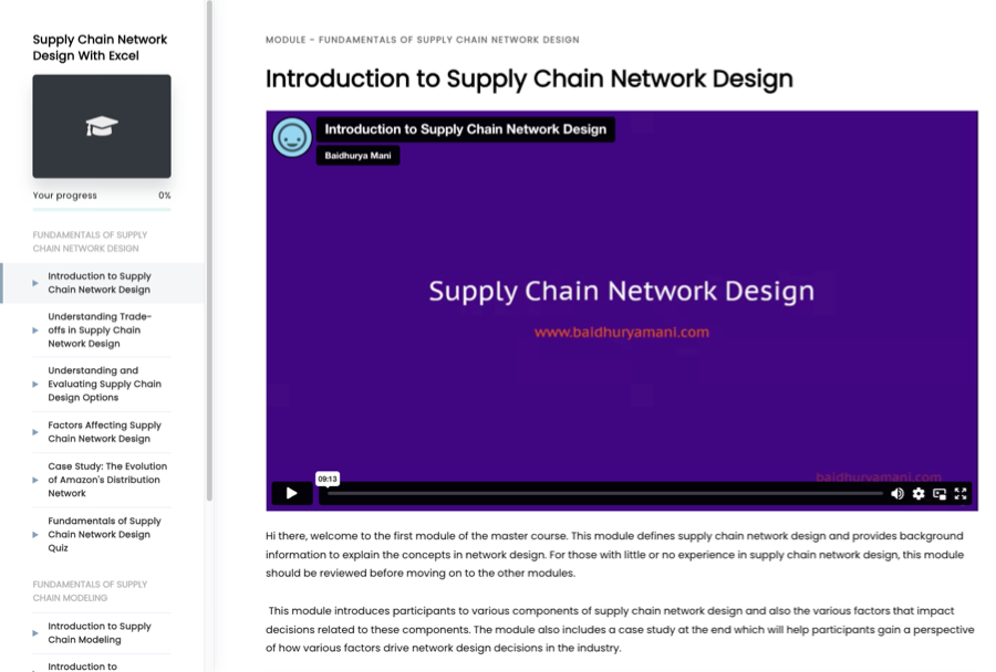 An alternative choice is the Grid layout, which presents all available modules collectively on a single page. Interacting with a specific module by clicking on it reveals a corresponding list of its lessons. While this layout boasts an attractive visual style enhanced by thumbnails, users might find navigating through it somewhat less intuitive.