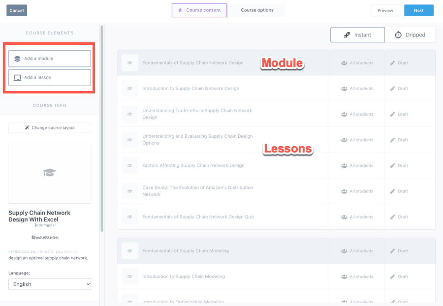 Individual lessons serve as the containers for your primary educational material, which can encompass diverse formats such as textual information, visual images, audio recordings, or video presentations. The lesson editing tool further provides options for arranging and stylizing these components, granting you comprehensive authority over the visual presentation and structure of each lesson.