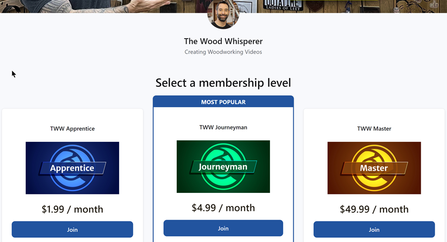 The Wood Whisperer cultivates a thriving digital crafting community for his dedicated YouTube audience through Patreon’s platform.